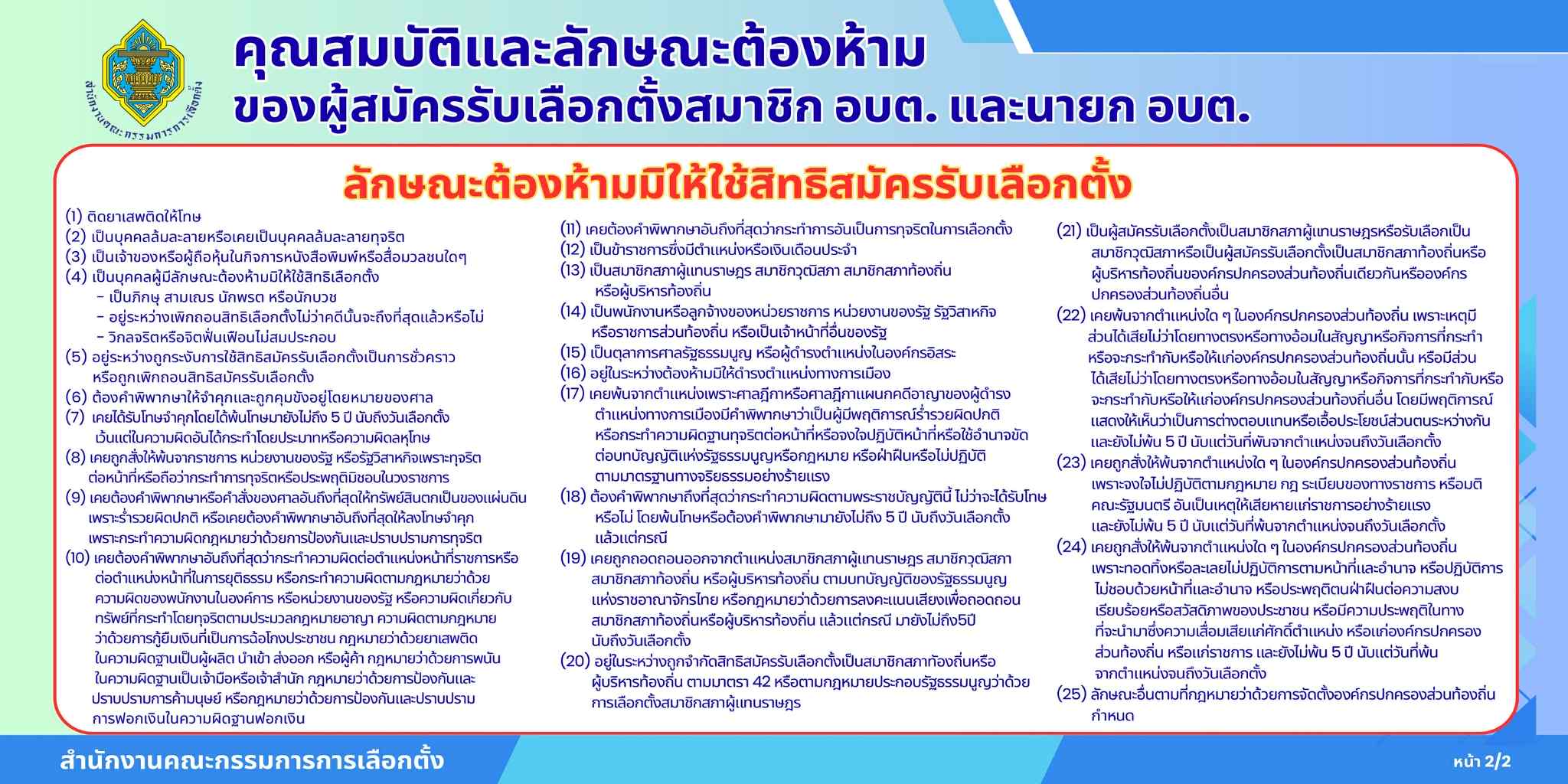 ประชาสัมพันธ์.. คุณสมบัติและลักษณะต้องห้าม ของผู้สมัครรับเลือกตั้งสมาชิก อบต. และ นายก อบต.